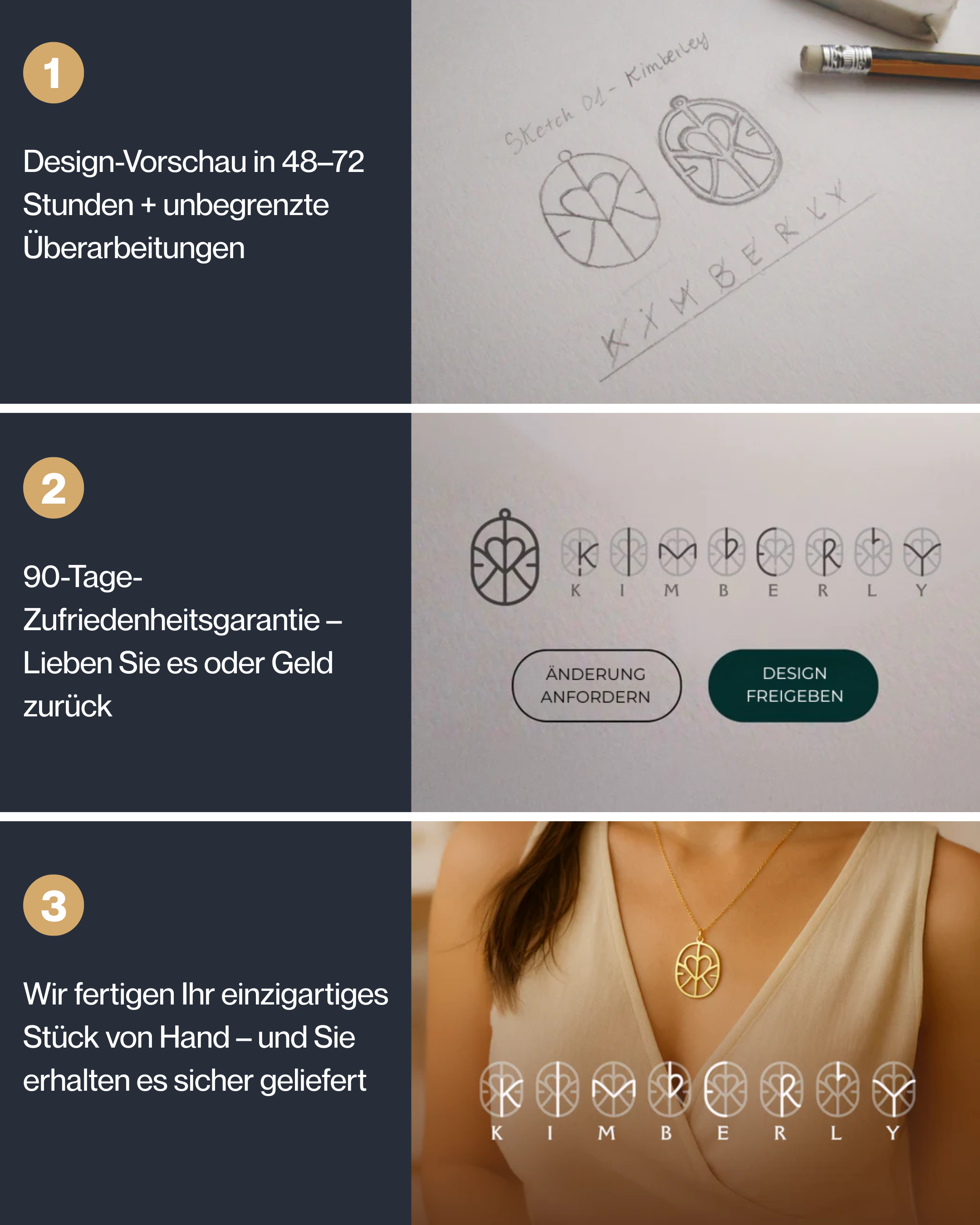 Wir fertigen deine Kette erst an, wenn du den Entwurf vollständig freigegeben hast.